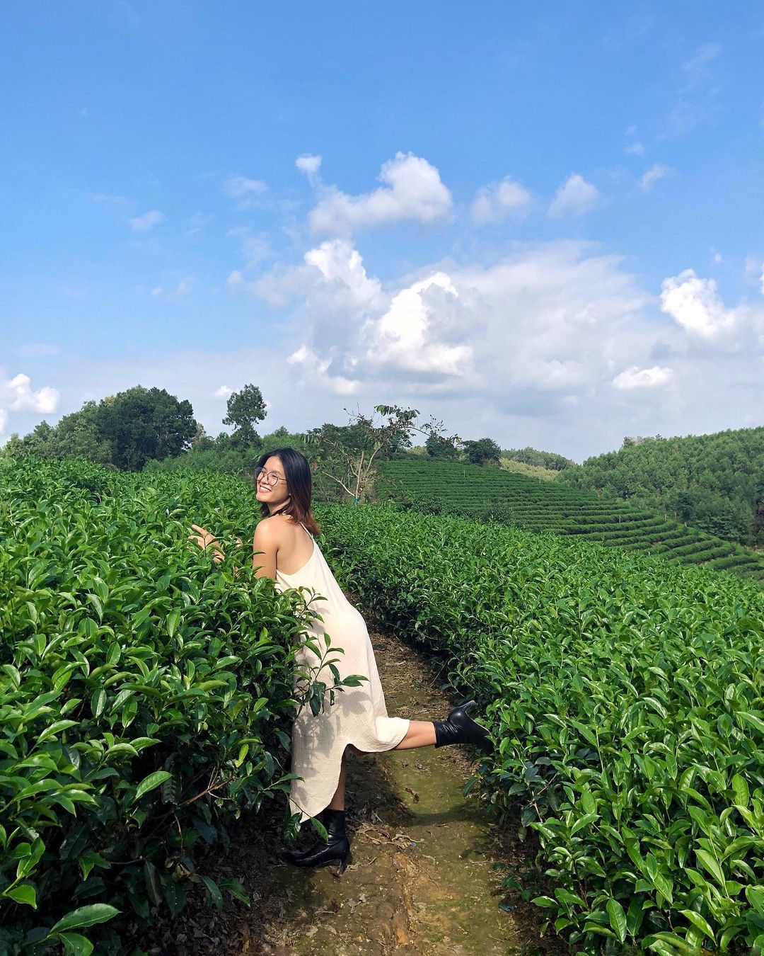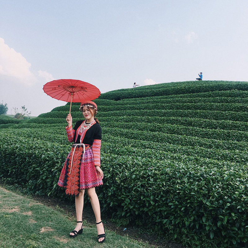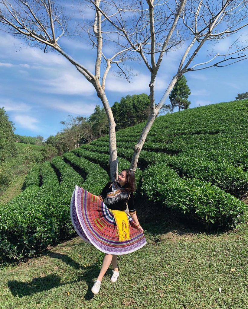 👗 Hóa thân thành thiếu nữ miền sơn cước: Để bộ ảnh thêm phần đặc biệt, bạn có thể thuê những bộ trang phục dân tộc hoặc những chiếc váy Boho sặc sỡ, tạo sự tương phản rực rỡ trên nền xanh mướt mát của đảo chè.