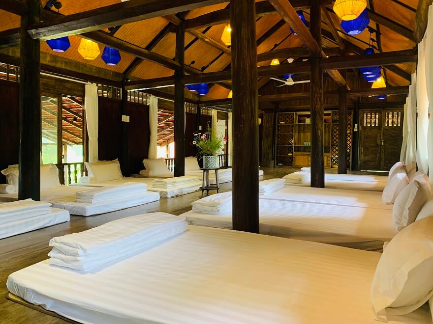 Đặc điểm: Không gian đa dạng từ phòng bungalow riêng tư, phòng dorm (tập thể) đến khu cắm trại ngoài trời.
