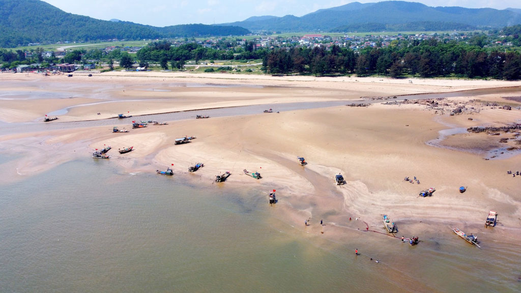 🏝️ Vị trí đắc địa: Cách trung tâm TP. Vinh khoảng 35km về phía Bắc, biển Cửa Hiền hiện ra với dải cát trắng mịn màng ôm lấy làn nước xanh ngắt, trong veo đến tận đáy.