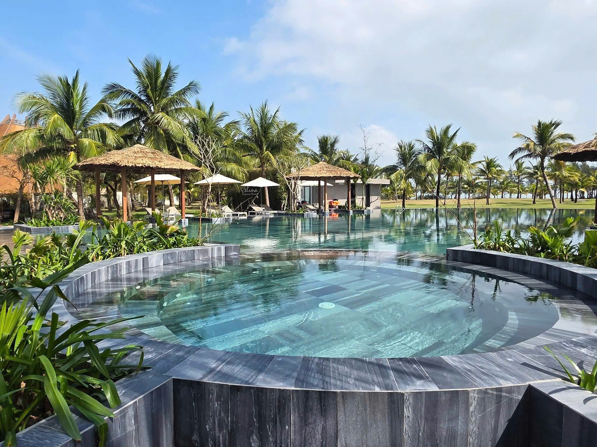 🏊 Hệ thống 02 hồ bơi tràn bờ: Một hồ bơi sát biển view "vô cực" và một hồ bơi trung tâm giữa vườn nhiệt đới xanh mướt.