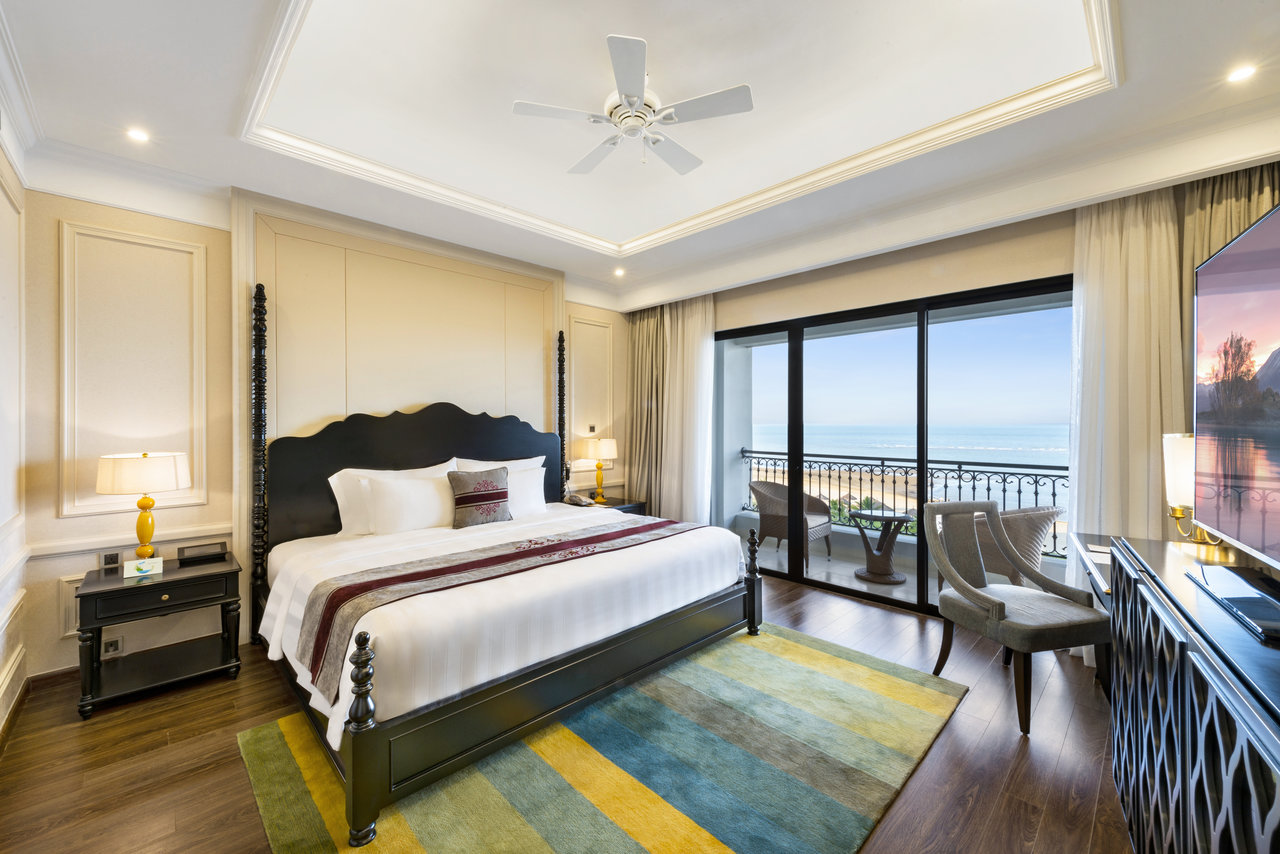 🏰 Tầm nhìn "triệu đô": Tại đây, khái niệm "view biển" được nâng tầm lên một đẳng cấp mới. Dù bạn ở phòng khách sạn hay những căn Villa riêng biệt, chỉ cần bước ra ban công, cả một vùng biển trời bao la sẽ thu trọn vào tầm mắt.